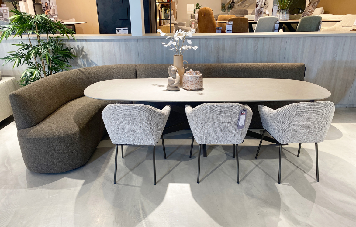 De kracht van een geslaagde eethoek zit in de balans tussen comfort en uitstraling. Door eettafel, stoelen en bank op elkaar af te stemmen, creëer je een harmonieus geheel dat bij jouw woonstijl past. Met een groot vloerkleed onder de tafel, een statement hanglamp en wat persoonlijke decoratie maak je de eetkamer helemaal eigen. Zo wordt jouw eethoek een plek waar je graag samenkomt, elke dag opnieuw.