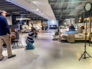 Afgelopen week was het weer zover: we hebben opnieuw een commercial opgenomen! Dit keer stond onze vernieuwde beddenafdeling in de spotlights. En wie anders dan onze eigen Antoine kon deze rol glansrijk vertolken? Met veel enthousiasme bracht hij de sfeer en luxe van onze slaapafdeling perfect over.