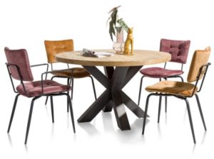 Werk je liever ton-sur-ton, dan kies je voor stoelen die qua kleur of materiaal mooi aansluiten op het tafelblad of de poten. Zo ontstaat er rust en eenheid in je eethoek.