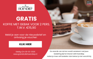 (De waarde van de bon wordt verrekend met jouw bestelling bij het Grand Café Hoendiep. Indien je meer wilt bestellen dan betaal je het verschil bij)