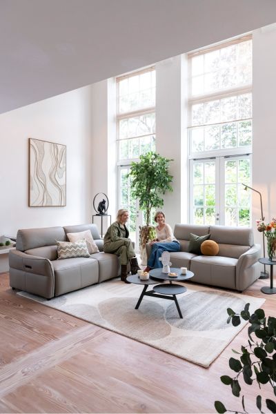 Deze relaxversie van de 3-zit Agello is een echte comfortbank met een tijdloze uitstraling waar maar liefst zes elektrische motoren inzitten (drie per zitelement). Hoofdsteun, lendensteun en voetensteun zijn onafhankelijk te bewegen. En er is een knop waarmee je met één druk alles weer in de standaardpositie brengt. Model Agello kan geleverd worden in een prachtige selectie van stoffen en leder in een groot palet aan kleuren, speciaal uitgezocht om de bank helemaal tot z’n recht te doen komen.
