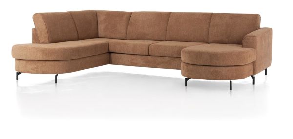 Henders & Hazel Alcona, longchair inclusief 3-zits + ottomane links - Vada koper / Vada beige
