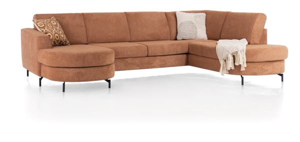 Henders & Hazel Alcona, longchair inclusief 3-zits + ottomane rechts - Vada koper / Vada beige