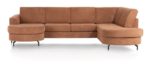 Alcona, longchair inclusief 3-zits + ottomane rechts – Vada koper / Vada beige
