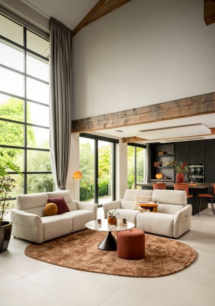 Voor wie kiest voor maximale ruimte en flexibiliteit: deze 3‑zits bank met twee relaxzones biedt comfort én elegantie. Twee personen kunnen ieder hun ideale relaxhouding vinden, terwijl een derde persoon gewoon naast hen zit — of je kiest voor twee relaxplekken en één klassieke zithoek, geheel volgens je wensen. Dankzij het intelligente design met USB‑A & USB‑C, en de keuze uit tientallen stoffen, past deze bank volledig in je leefwereld.