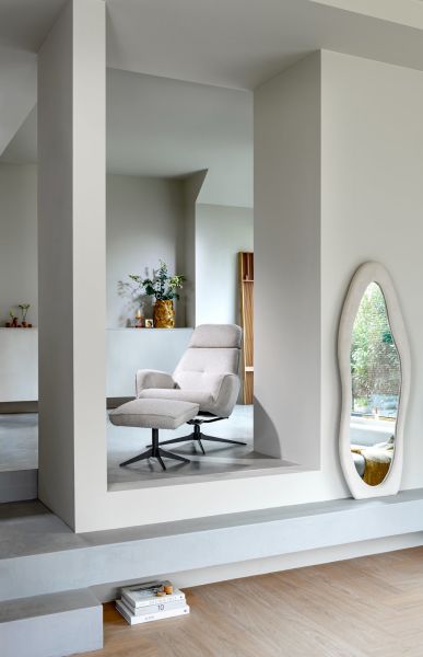 Deze voorraadversie van de BOBBIAN poef vormt een comfortabele aanvulling op de bijpasssende relaxfauteuil. Je gebruikt de poef als praktische beensteun, zodat je nog relaxter kunt zitten en optimaal kunt genieten van je fauteuil. Het metalen onderstel sluit mooi aan bij het design van de fauteuil en geeft het geheel een moderne uitstraling. Deze uitvoering is bekleed met stof Sevilla crème, dezelfde warme en zachte stof als de bijpassende fauteuil. Zo creëer je eenvoudig een stijlvolle en comfortabele set in je interieur.