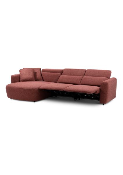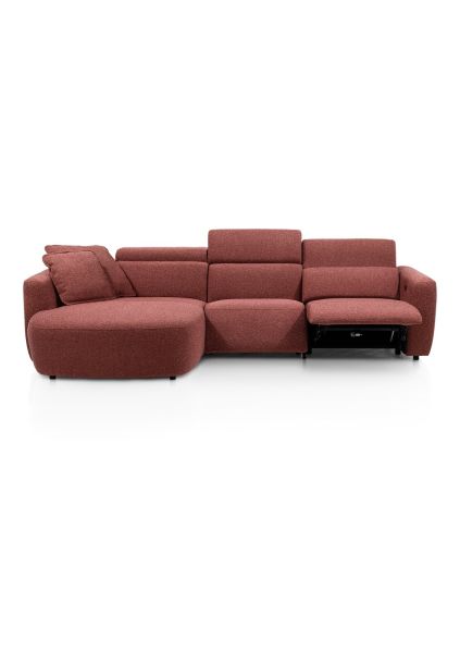 Deze CANTELLO bankopstelling met longchair biedt volop ruimte om comfortabel te zitten en te ontspannen. De opstelling bestaat uit een gebogen longchair met arm links en een 2,5-zits met arm rechts. De afgeronde vorm van de longchair zorgt voor een zachte, moderne uitstraling en wordt aangevuld met twee losse armkussens. Beide zitplaatsen van de 2,5-zits zijn voorzien van een 2-motorige elektrische relaxfunctie. De bank is uitgerust met pocketvering en uitgevoerd in boucléstof Cloudy copper.