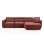 Deze CANTELLO hoekopstelling combineert ronde vormen met zitcomfort en elektrische relaxfuncties. De bank bestaat uit een 2,5-zits met arm links en een gebogen longchair met arm rechts. Dit element heeft een afgeronde vorm en is voorzien van twee losse kussens. Beide zitplaatsen van de 2,5-zits zijn uitgerust met een 2-motorige relaxfunctie, waardoor rugleuning en beensteun elektrisch verstelbaar zijn. De opstelling is standaard voorzien van pocketvering en uitgevoerd in de warme boucléstof Cloudy copper.