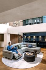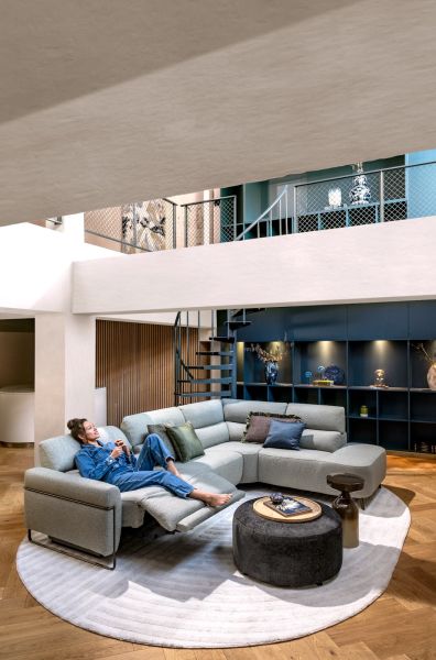Deze CREAZZO opstelling combineert een 3,5-zits met arm links, een hoekelement en een ottomane small rechts tot een royale en eigentijdse zithoek. De zitplaats naast de arm is uitgerust met een elektrische relaxfunctie met 2 motoren, waarmee je zitting en hoofdsteun afzonderlijk verstelt. Dankzij het wall away systeem kan de opstelling tegen de muur staan. De ranke designpoot loopt deels langs de arm en geeft de bank een elegant en ruimtelijk effect. Deze opstelling is uitgevoerd in stof Cloudy olive en voorzien van Bonellvering en vaste rugkussens.