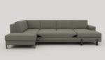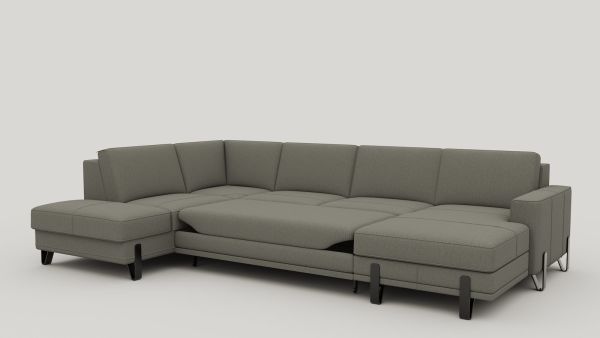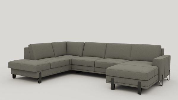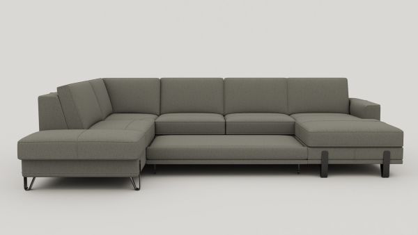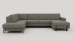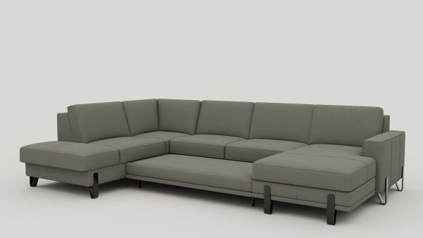 Met deze U-opstelling van bank DENVER haal je veel zitruimte en praktisch gebruiksgemak in huis. De grote ottomane aan de linkerkant en de longchair rechts zijn voorzien van opbergruimte, waardoor je eenvoudig spullen uit het zicht houdt. Pocketvering in de zitting draagt bij aan comfortabel zitten. De uitvoering in chenillestof Livigno grijs, gecombineerd met 13 cm hoge designpoten, geeft de bank een minimalistische en moderne uitstraling.