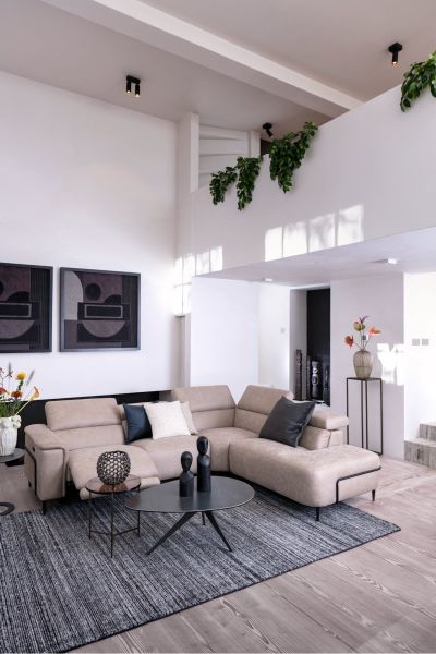 Een bank om heerlijk op weg te dromen: dat is deze voorraadversie van de Dolcedo. Deze hoekbank is samengesteld uit een 2,5-zits met een arm links, een hoek en een kleine ottomane rechts. Ze is uitgevoerd in de stof Oregon beige. Op deze relaxbank kom je helemaal tot rust na een lange dag. Deze relaxbank is electrisch verstelbaar en heeft handmatig verstelbare hoofdsteunen en Bonell-vering voor extra zitcomfort. Het stijlvolle designframe geeft de bank een luxueuze uitstraling.