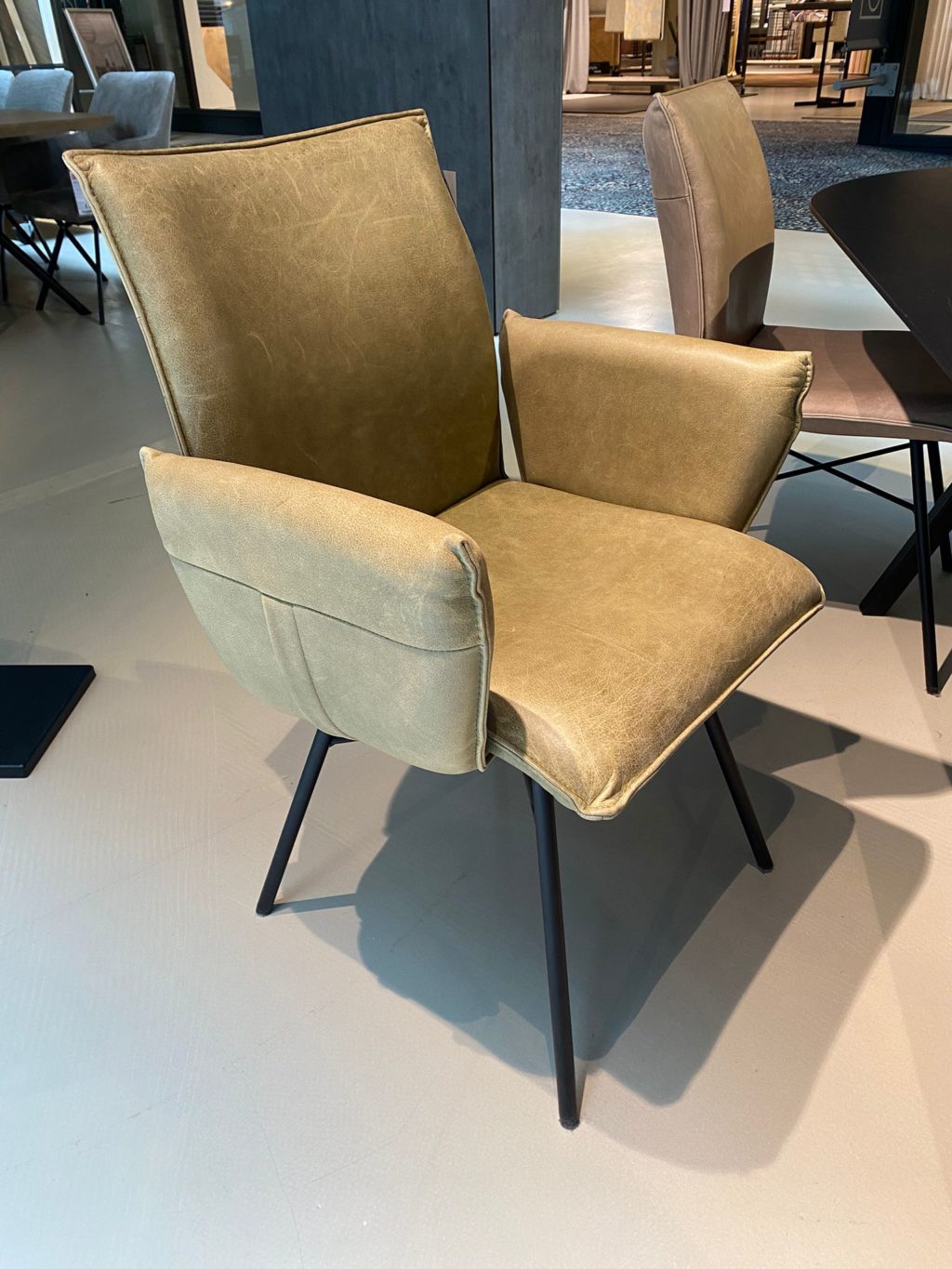 Uitgevoerd in leder Vintage cognac, olive en taupe en leder Rancho steel