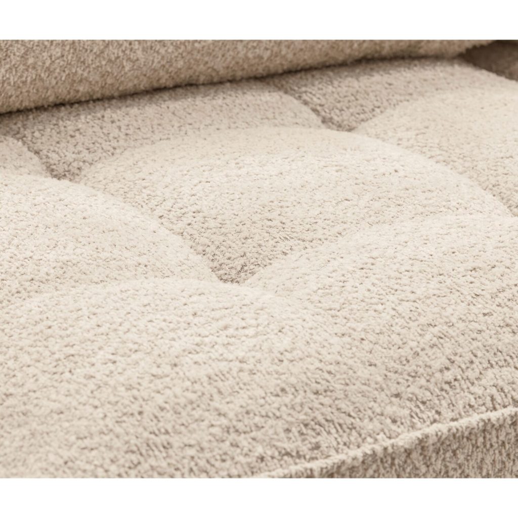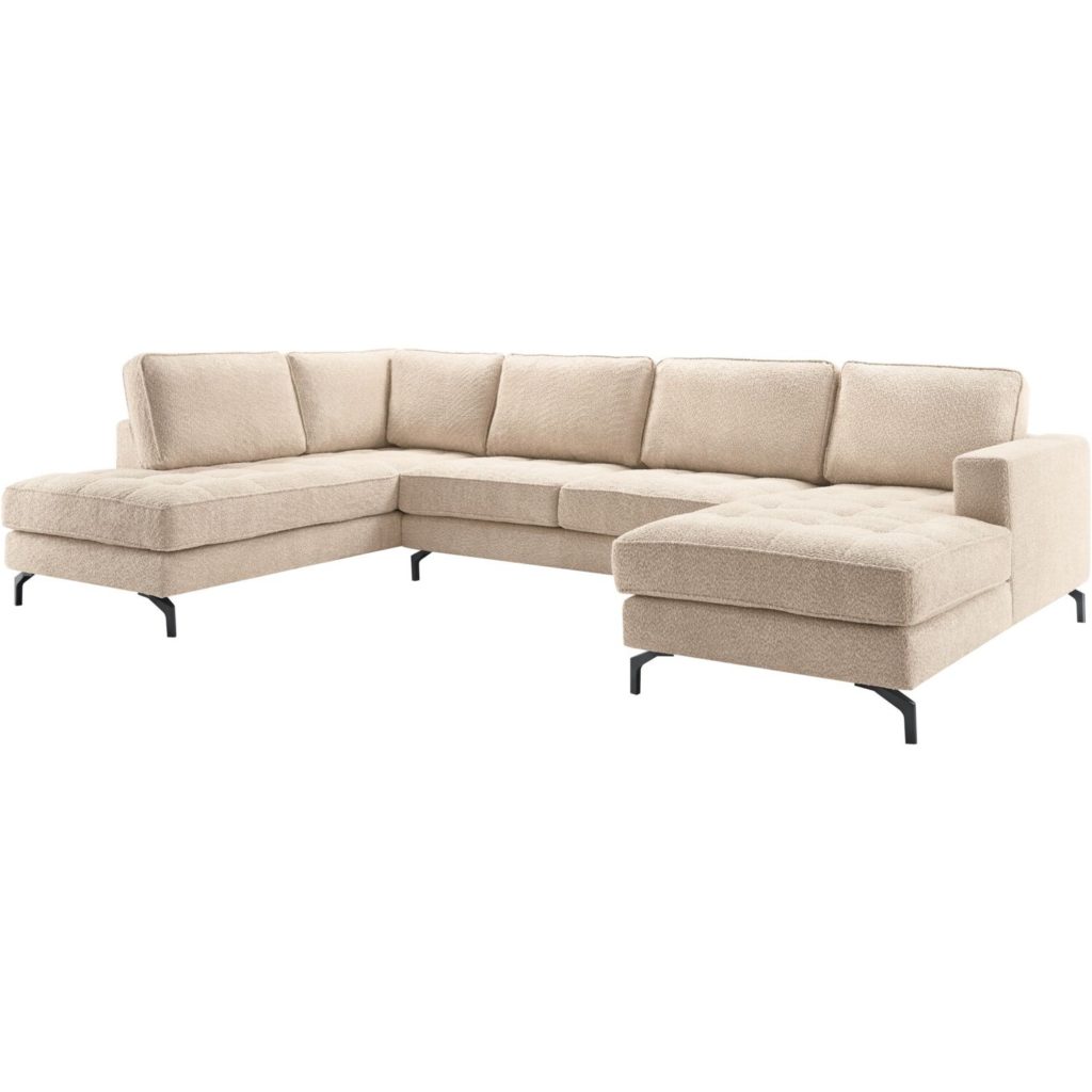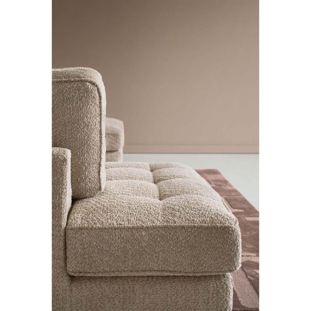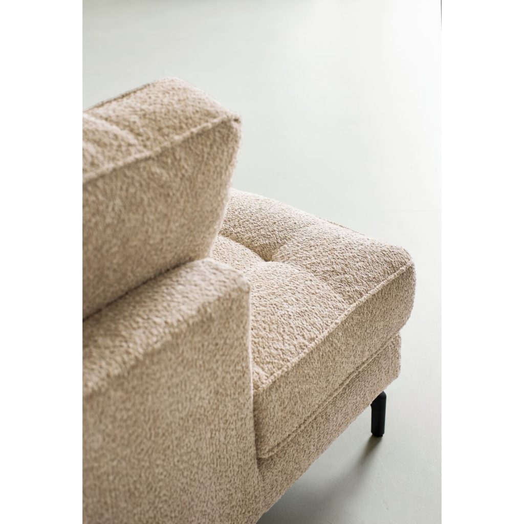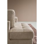 Model Rokias is een moderne bank en heeft een heerlijk zitcomfort. De bank is uitgevoerd in een zachte beige boucléstof en voorzien van zwart metalen poten. Door de grote, wat diepere elementen heeft Rokias zijn oversized look en is daarom de perfecte familiebank.