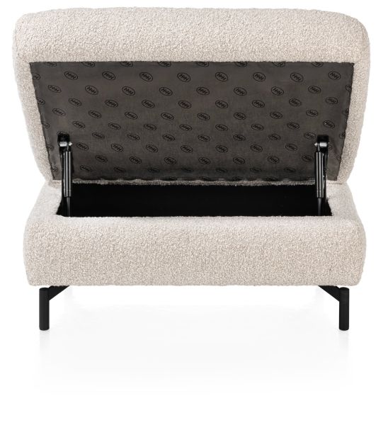 Welke zitmeubelcollectie zou compleet zijn zonder bijhorende poef? Deze Martano alvast niet! Deze comfortabele poef heeft een afmeting van 83x57cm en heeft een hoogte van 45cm. Er is ook nog een kleinere versie. Opvallend aan deze poef is de optie om een extra opbergsysteem toe te voegen, zodat je de poef makkelijk open en dicht kunt klappen. Net zoals de overige elementen uit deze zitmeubelcollectie, kun je ook deze poef uitrusten met extra pocketvering, en zijn er meer dan 300 stof- en kleurmogelijkheden.