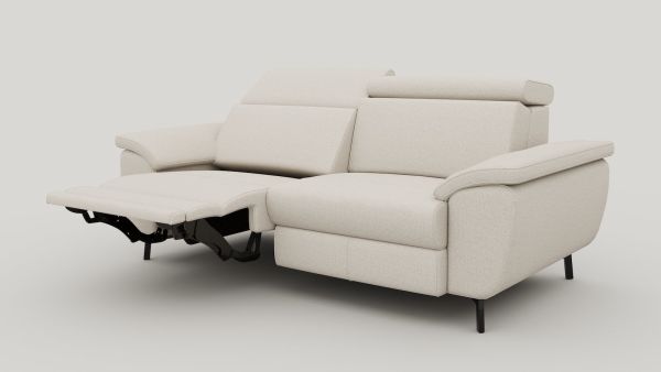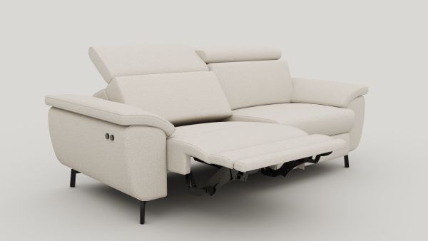 Compact en comfortabel: de Napels 2,5-zitsbank met relaxfunctie is ideaal voor wie wil genieten van luxe in een kleinere opstelling. De zachte chenille Vada-stof in de kleur beige voelt prettig aan en is geschikt voor intensief gebruik. Dankzij het elektrische relaxsysteem verstel je eenvoudig de voetensteun en rugleuning, terwijl de manueel verstelbare hoofdsteun extra ondersteuning biedt. De vaste zitkussens zijn gevuld met HR-schuim en nosagvering, voor een stevige maar comfortabele zit. De zwarte metalen poten maken het design compleet.