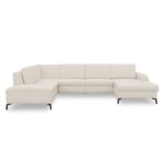 De Napels U-bank in crème is een stijlvolle blikvanger die rust en ruimte brengt in je interieur. De lichte Vada-stof geeft de bank een frisse, uitnodigende uitstraling. Dankzij de ruime U-vorm met loungegedeelte links biedt de bank comfortabel plaats aan zes personen. De vaste kussens zijn gevuld met pocketvering en nosagvering voor een stevige, ondersteunende zit. Met de ingebouwde opbergbox heb je extra ruimte binnen handbereik. De zwarte metalen poten maken het geheel strak en modern.