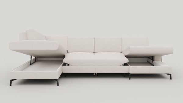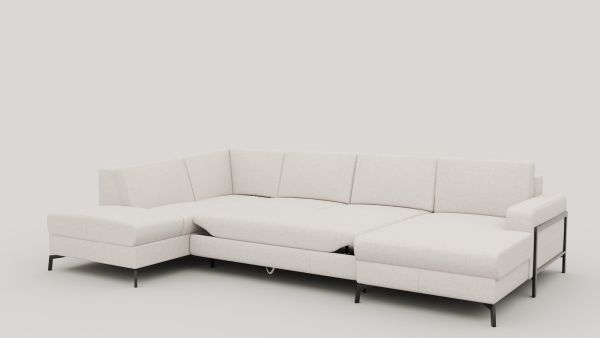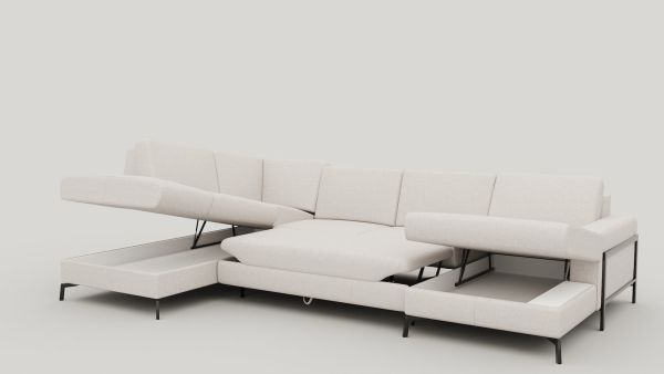 De Napels U-bank combineert comfort, functionaliteit en stijl. Deze royale U-vormige bank is perfect voor grote gezinnen of wie graag gasten ontvangt. De neutrale kiezelkleur in chenille Vada-stof geeft de bank een rustige, moderne uitstraling. Met ruimte voor zes personen, een loungegedeelte aan de linkerzijde en een praktische opbergbox is dit een echte allrounder. De vaste kussens zijn gevuld met pocketvering en nosagvering voor optimaal comfort. De zwarte metalen poten zorgt voor een stevige, eigentijdse afwerking.