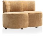 Dit bankje uit de Roan-serie van COCOmaison is met zijn bolle vorm een opvallende verschijning. In de serie zitten ook nog twee poefs en een fauteuil en alle elementen zijn door hun vorm perfect met elkaar te combineren. Ze zijn bekleed met een trendy stof en zijn verkrijgbaar in twee kleuren. Dit bankje is uitgevoerd in kleur oker en gemaakt van 30% metaal, 15% multiplex, 30% schuim en 25% stof. Goed om te weten: er worden twee sets poten meegeleverd, waardoor je de fauteuil op een standaard zithoogte kunt plaatsen, maar ook op een hoogte die geschikt is voor gebruik aan een eettafel. Het bankje is 120 cm breed, 71 cm diep en heeft inclusief rugleuning een hoogte van 74 cm.