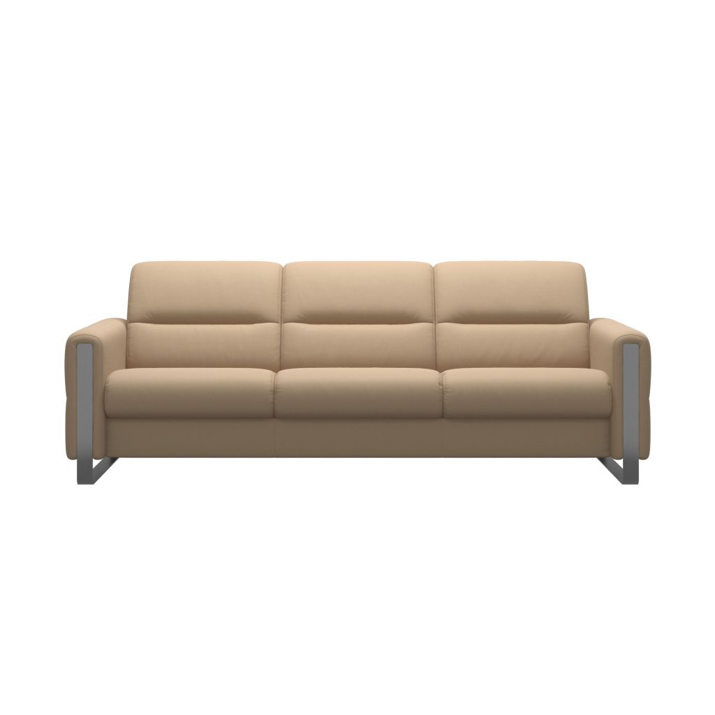 De Stressless® Fiona is een modern en strak design met elegante proporties. De gebogen rug is klassiek, heeft stijlvolle stalen elementen in de armleuningen en beschikt over mooie, eenvoudige lijnen met fijn horizontaal gestikte accenten voor een unieke look.