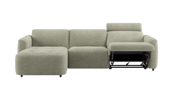 De Rochelle bank heeft een zacht design met elegante inpullingen die zorgen voor een verfijnde uitstraling. De comfortabele zit wordt aangevuld met een elektrisch verstelbare voeten- en hoofdsteun, zodat je eenvoudig jouw ideale zitpositie instelt. Kies uit een speciale selectie van mooie stoffen en geef Rochelle de uitstraling die past bij jouw interieur. Dit 3-zits element met arm rechts is perfect als onderdeel van een modulaire opstelling.