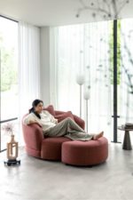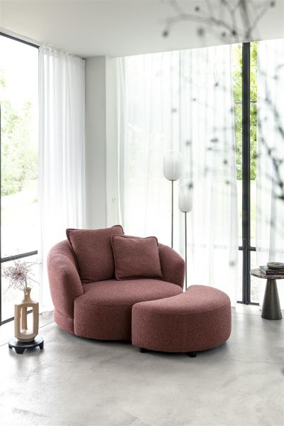 Maak kennis met CERVOS: een ronde, draaibare fauteuil die je interieur direct zachter maakt. Met zijn royale Ø130 cm en twee meegeleverde kussens (60×60 en 45×45 cm) is CERVOS gemaakt om in weg te zakken. De rug en armen lopen vloeiend in elkaar over en de zachte, ronde vormen geven hem een organische look. Dankzij de diepe zit relax je ultiem, terwijl de lage bouw de pootjes subtiel uit het zicht houdt. Omdat CERVOS rondom is gestoffeerd, plaats je hem moeiteloos vrij in de ruimte. Kies je favoriete bekleding uit onze selected choices. Liever compacter? Hij is er ook een maat kleiner én met bijpassende hocker. Voor welke uitvoering kies jij?