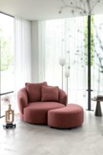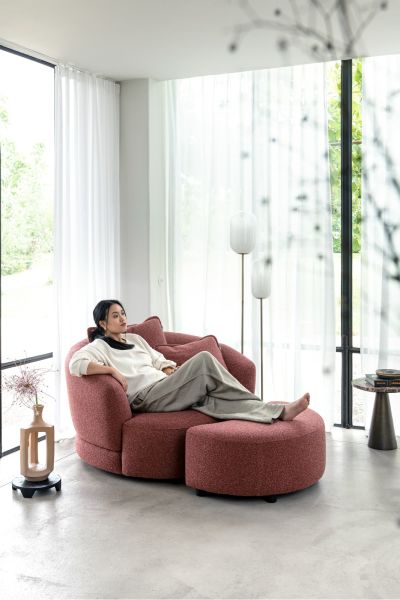 Maak je loungehoek compleet met de CERVOS hocker, perfect passend bij de royale draaifauteuil van Ø130 cm. Deze hocker volgt dezelfde zachte, ronde vormentaal en is rondom gestoffeerd, zodat hij zich moeiteloos vrij in de ruimte laat plaatsen. Gebruik hem als comfortabele voetenbank om ultiem te relaxen, of als extra zitplek wanneer je gasten hebt. Dankzij de lage bouw sluit hij naadloos aan bij het ronde design van de fauteuil. Je kiest de bekleding uit onze selected choices collectie, zodat hocker en fauteuil één harmonieus geheel vormen. Zie jij jezelf al wegdromen in deze luxe combinatie?