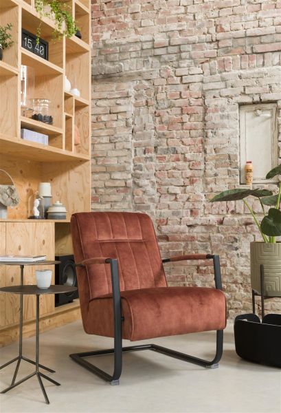 Northon, fauteuil met houten arm vintage clay / white / black