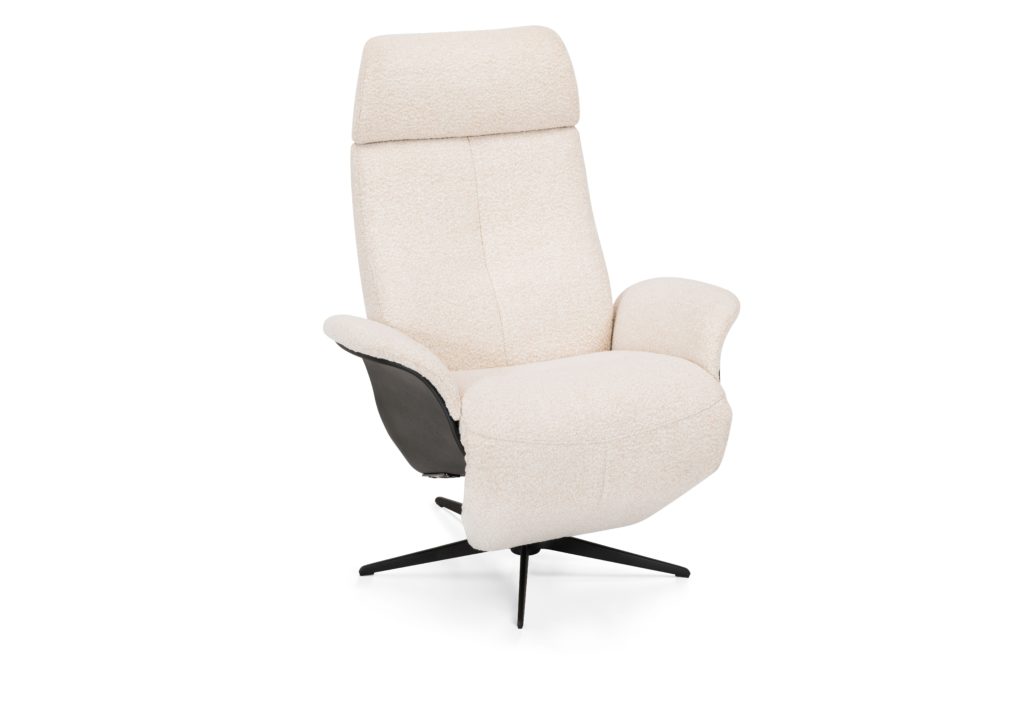 De elegante Via Roma relaxfauteuil is gemaakt volgens de typische Scandinavische stijl en kwaliteit. Met de prachtige stof Ascot in de tijdoze kleur pearl en uiteraard uitgevoerd met het geweldige zitcomfort van Baenks. Zoals getoond: relaxfauteuil maat Large in stof ascot, kleur: pearl. Met zwarte metalen 5-teenspoot, houten armschalen in zwart en elektrisch verstelbaar door middel van 2 motoren. Afmetingen: H121 x B80 x D87 cm.