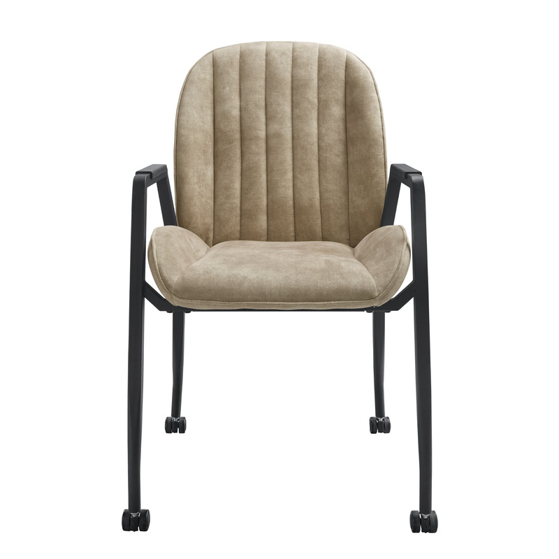 Bij de poten kun je kiezen uit een eetstoel met sledepoot, een armstoel met 4 rechte poten met parketwieltjes, en een eetstoel met 4 schuine poten, allemaal in zwart metaal. De rugstiksels zijn leverbaar in horizontale sierstiksels, verticale sierstiksels en vierkante sierstiksels. Met deze stiksels krijgt iedere stoel weer een andere uitstraling.
