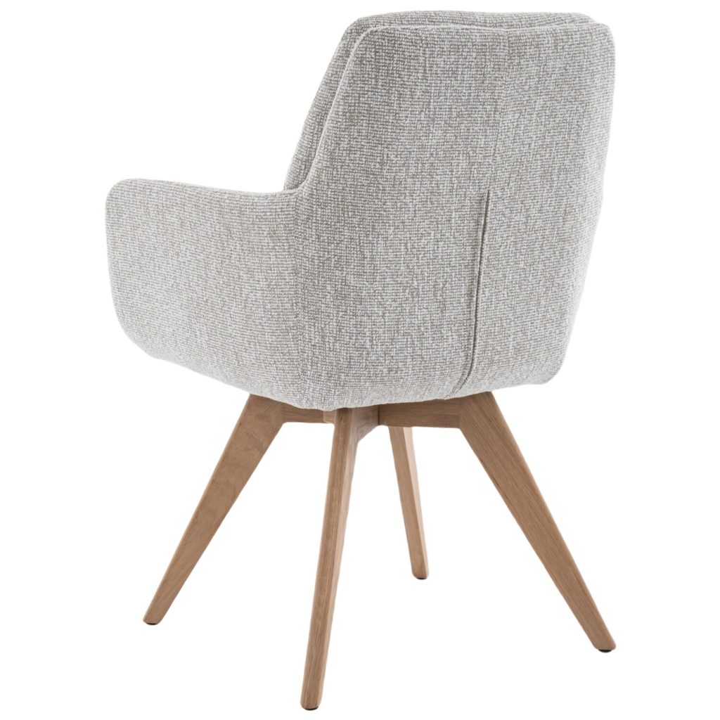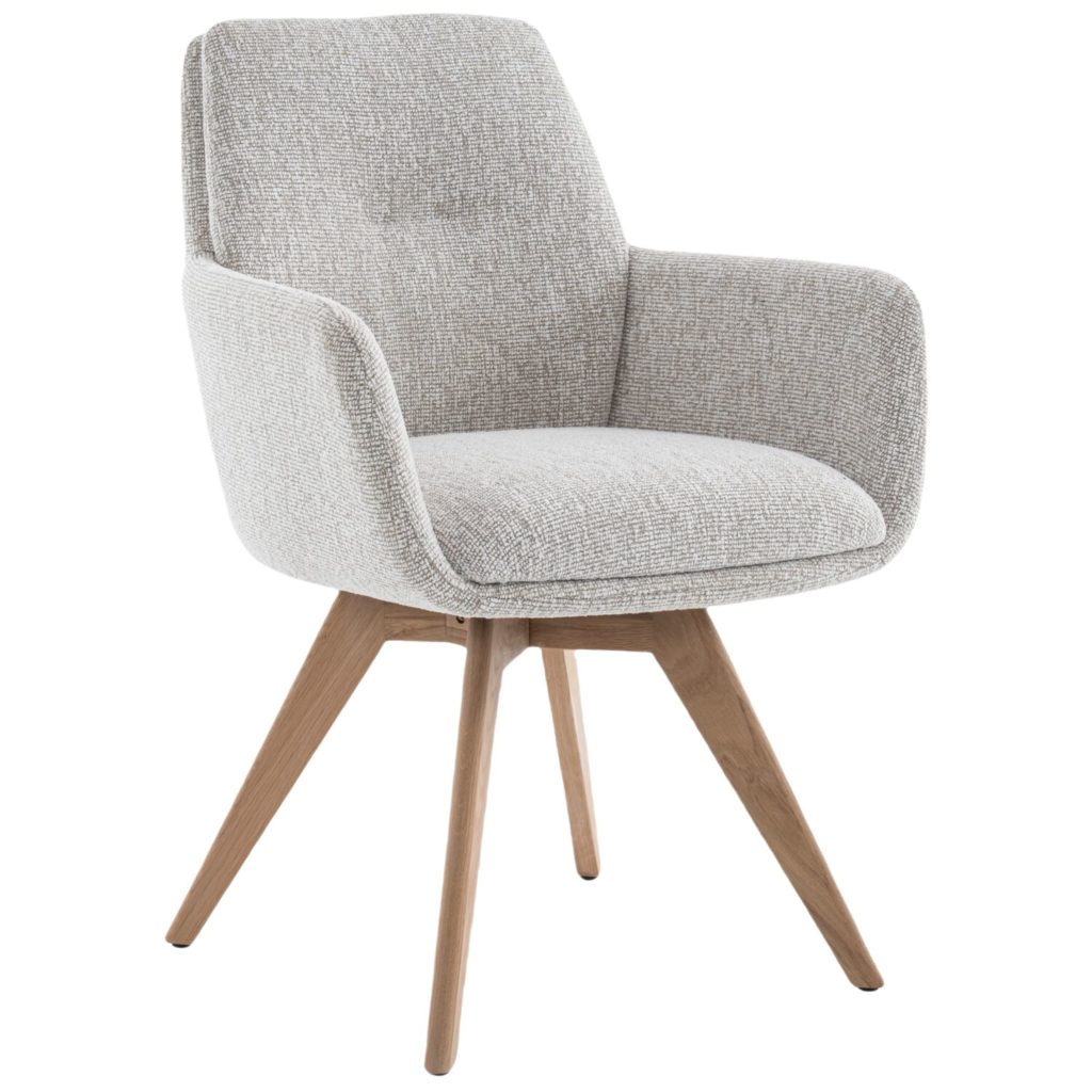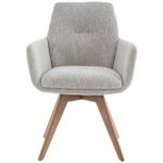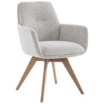 Armstoel Jasmia is met zijn moderne uiterlijk een echte parel voor in je eetkamer. Deze tijdloze eetkamerstoel is uitgevoerd in een prachtige beige bouclé stof en een draaibaar massief eiken onderstel inclusief terugdraaimechanisme. Hierdoor zal de stoel altijd weer naar zijn oorspronkelijke positie terugdraaien.