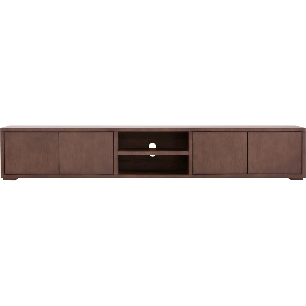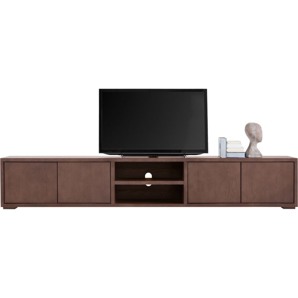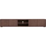 De kastenserie van Nerano is strak en tijdloos. Dit TV-meubel is uitgevoerd in eiken fineer in de kleur Wengé en heeft 4 deuren en 2 open vakken. De eiken ombouw is gelakt, waardoor deze vriendelijk in onderhoud is.