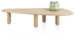 De Scandinavische woonstijl is populairder dan ooit, ook bij Henders & Hazel. Bij onze collectie Azulo zie je alle belangrijke kenmerken van deze woonstijl terug. Vanzelfsprekend maken ook tafels deel uit van de Azulo-collectie, en die hebben dezelfde pure belijning als de opbergmeubels. Vooral het massief eikenhouten blad van de eettafels valt op: dat heeft een bijzondere kiezelvorm (pebblestone). Het blad van de salontafel heeft een meer driehoekige vorm. De salontafel is verkrijgbaar in twee maten die je door het hoogteverschil van 5 cm heel leuk kunt combineren. Deze heeft een blad van 160 cm lang, is 65 cm breed en 30 cm hoog.