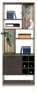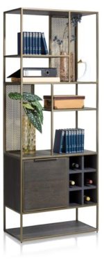 Henders & Hazel City, boekenkast 70 cm. - 1-deur + 6-niches + 6-wijnrekken