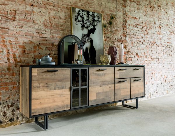 Dit dressoir uit de Avalon collectie van Henders & Hazel heeft een stoer en wat doorleefd uiterlijk. Dit komt met name door de afwerking in de kleur driftwood. De zwarte metalen accenten geven het dressoir een stoere finishing touch. Het laminaat lijkt van massief hout, maar is van Primo Laminato, een sterk materiaal met de look van hout. De breedte van dit dressoir is 170 cm. Dankzij de 3 deuren en 1 lade is er zeker voldoende bergruimte.