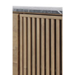 De deuren van de kast zijn uitgerust met een handig push-to-open magneetsluiting. Dit betekent dat je geen handgrepen of knoppen nodig hebt om de deuren te openen. Met een lichte druk worden de deuren moeiteloos geopend, waardoor je een strak ontwerp behoudt. Eén van de deuren is voorzien van latjes met daarachter glas. Achter deze deur is de kast voorzien van LED verlichting voor een sfeervol effect.