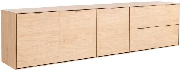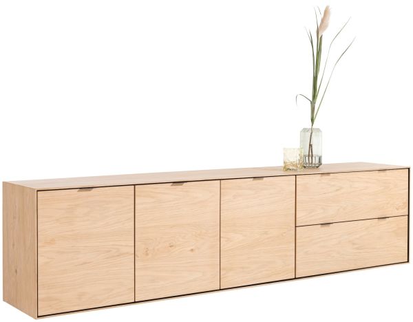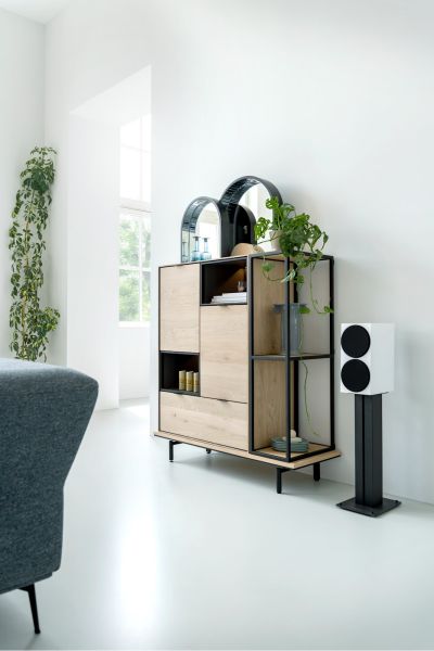 Met dressoir ELEMENTS geef je jouw favoriete woonaccessoires een plek om op te stralen. ELEMENTS is 240 cm breed, gemaakt van eiken fineer en verkrijgbaar in de kleuren naturel en onyx. Kies zelf op welke manier je dit prachtige meubelstuk in je interieur plaatst. Zet je het direct op de grond, laat je het pronken op designpoten of op een stijlvol plateau? De 3 deuren en 2 lades met hoogwaardig soft closing systeem bieden genoeg ruimte om je spullen netjes op te bergen.