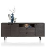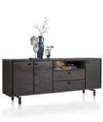 Antraciet, Onyx en zwart zijn populaire kleuren in het interieur. Ze zijn goed te combineren en zorgen voor een sfeervolle sjieke uitstraling. Dit dressoir uit de Livada collectie is 210 cm breed en gemaakt van wild eikenfineer. Het meest opvallende aan dit dressoir is de kleur: Onyx. Dankzij de 3 deuren, 2 laden en niche is er genoeg bergruimte.