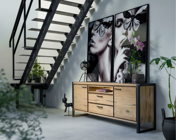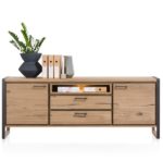 Dit stoere dressoir uit de Metalo collectie van Henders & Hazel heeft 2 deuren, 2 laden en 1 niche voorzien van led-verlichting. Het dressoir is gemaakt van eikenhoutfineer en is voorzien van stoere metalen accenten. Hierdoor krijgt dit dressoir een robuuste eigentijdse uitstraling. Het dressoir in deze uitvoering is verkrijgbaar in een variant van 210 cm en 180 cm breed.