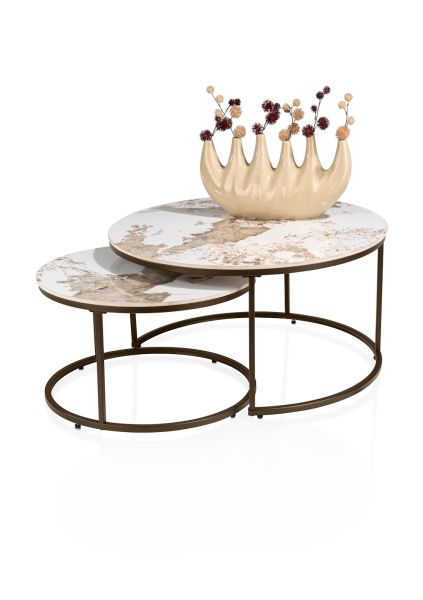 Fusion, Salontafel set, rond 80 cm en rond 60 cm, keramiek Pandorra white