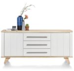 Dit dressoir uit de Jardin collectie van Henders & Hazel is 190 cm breed, heeft 2 deuren en 3 laden. Het dressoir heeft een strak lijnenspel, maar dankzij het eikenfineer in de kleur Railway Brown een mooie warme uitstraling. Opvallend zijn de fronten en zijkanten van dit meubel, die uitgevoerd zijn in MDF in de kleur Pure White. Het lijnenspel gecombineerd met de afwerking geeft dit dressoir een moderne landelijke uitstraling.