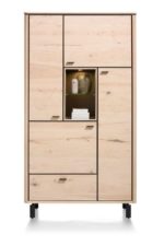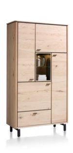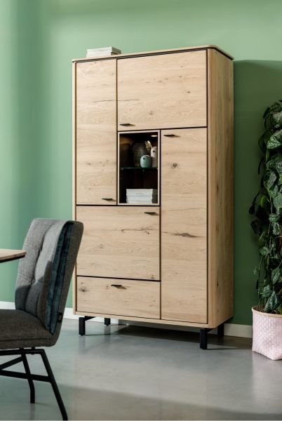 Deze bergkast van wild eiken fineer is afkomstig uit de Livada collectie van Henders & Hazel. Opvallend is het strakke lijnenspel, fraai is de natuurlijke uitstraling van de kast. De bergkast is 110 cm breed en 200 cm hoog. De natuurlijke uitstraling dankt de kast aan de afwerking in de kleur Natural. De zwart metalen accenten zorgen voor een mooi contrast met de lichte houtkleur. Dankzij de 4 deuren, 1 lade en 2 niches heeft deze berkgast genoeg bergruimte. Liever een andere kleur, de bergkast is in 4 verschillende kleuren leverbaar