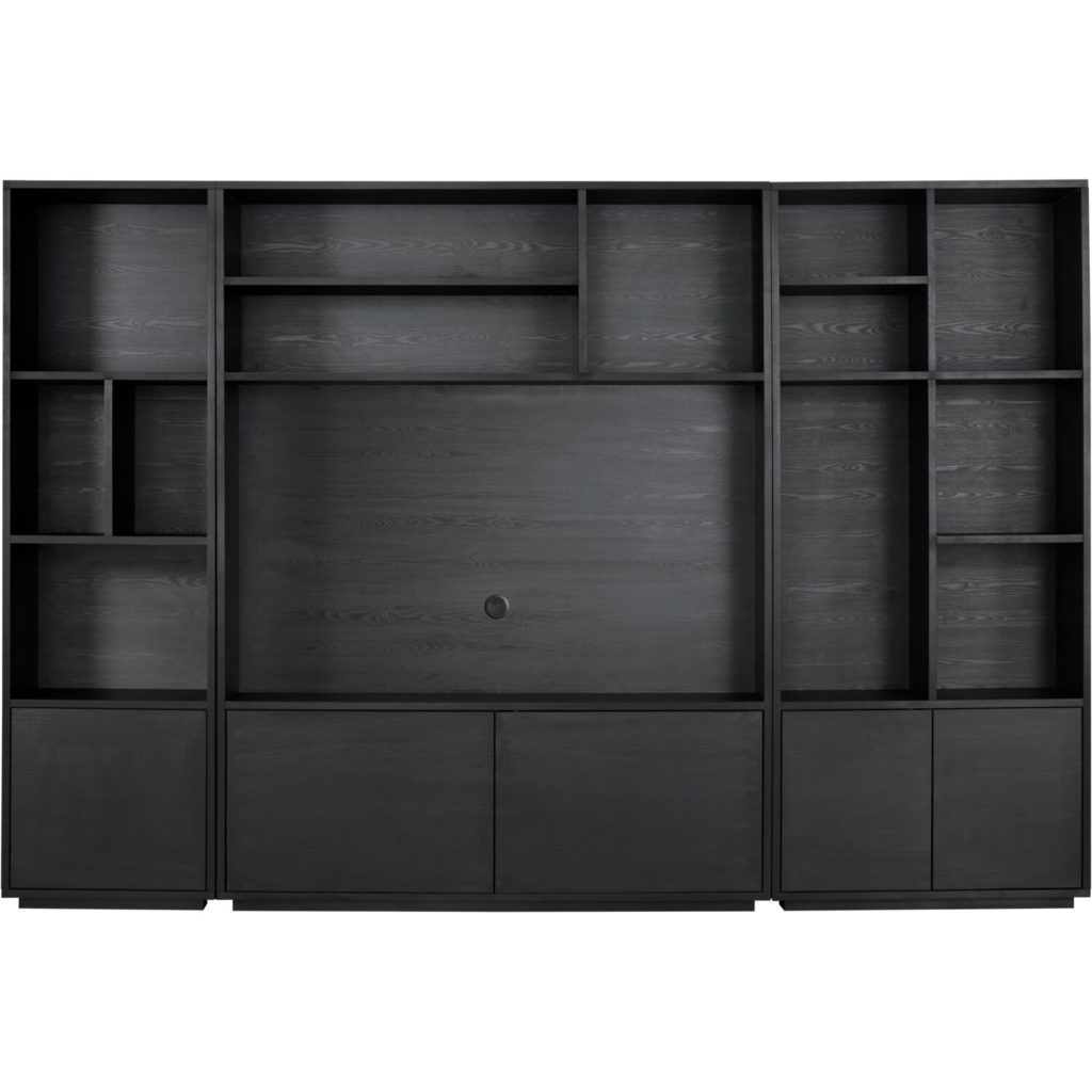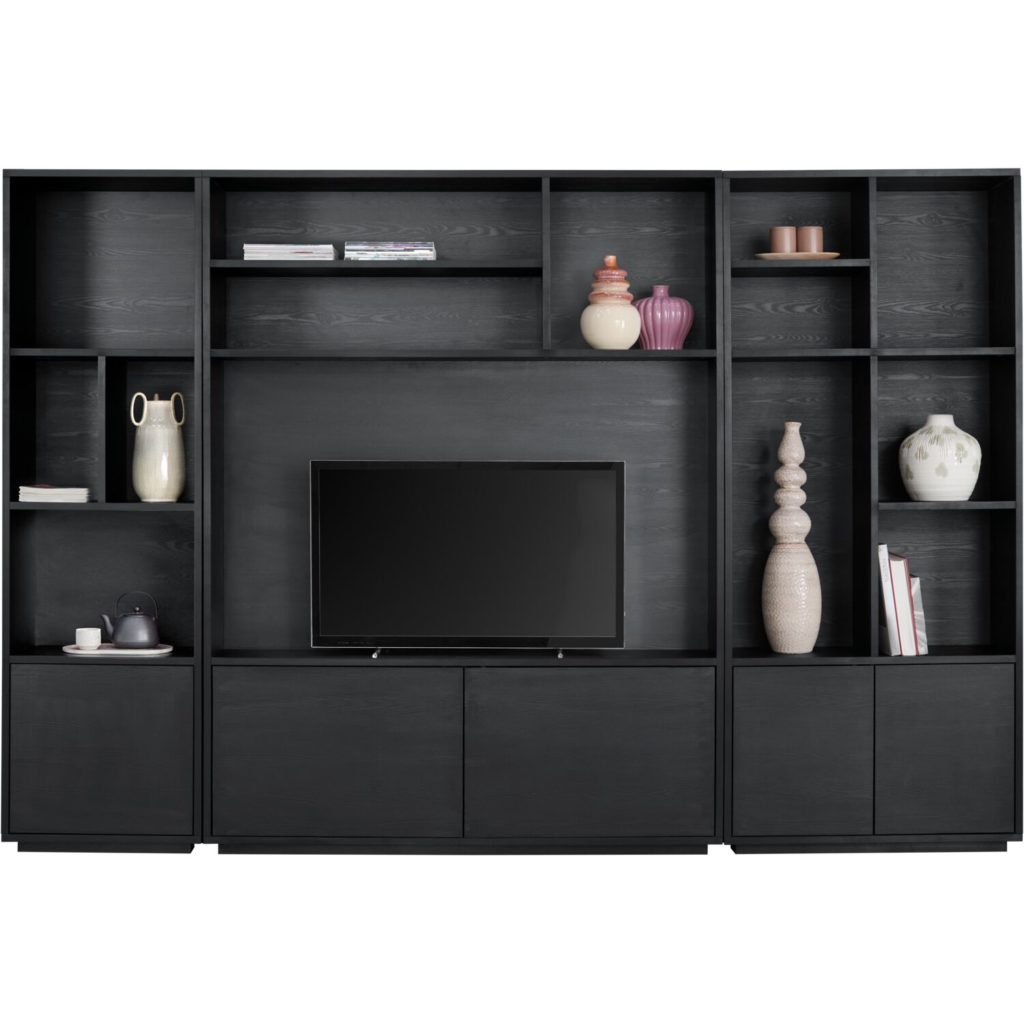 TV-kastenwand Hatonia is onderdeel van een meubelserie met een moderne en tijdloze uitstraling. Deze complete TV-wall bestaat uit een hoge wandkast van 60 cm met 1 deur, een grote tv-wandkast van 154 cm breed met 2 deuren en een wandkast van 90 cm breed met 2 deuren. Dankzij de hoogwaardige Lamulux afwerking in Noir, heeft Hatonia de uitstraling en het gevoel van echt hout, maar is zeer kras-, slijt- en stootvast en makkelijk in onderhoud. Alle deuren zijn voorzien van een soft-close en push-to-open systeem.