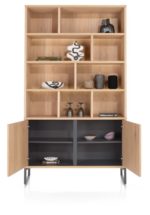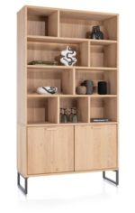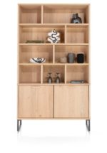 Deze buffetkast Castello heeft een open en modern Scandinavisch design. Grote open vakken, subtiele ledverlichting en voldoende opbergruimte onderaan maken van deze buffetkast een meubel dat echt kan scoren in jouw interieur. De frisse lichte houtkleur sand oak draagt bij aan de Scandinavische look van deze eikenhouten collectie. De buffetkast heeft 9 open vakken en 2 ruime kastdeuren onderaan. Er zijn 3 formaten buffetkast in deze collectie met elks een variërende breedte en hoogte. Deze versie is 123cm breed en 215cm hoog.