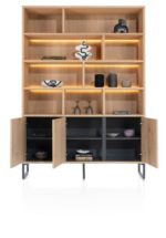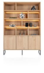 Deze buffetkast Castello heeft een open en modern Scandinavisch design. Grote open vakken, subtiele ledverlichting en voldoende opbergruimte onderaan maken van deze buffetkast een meubel dat echt kan scoren in jouw interieur. De frisse lichte houtkleur sand oak draagt bij aan de Scandinavische look van deze eikenhouten collectie. De buffetkast heeft 9 open vakken en 3 ruime kastdeuren onderaan. Er zijn 3 formaten buffetkast in deze collectie met elks een variërende breedte en hoogte. Deze versie is 150cm breed en 205cm hoog.