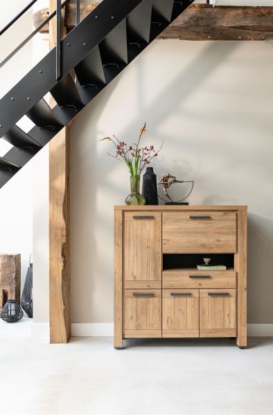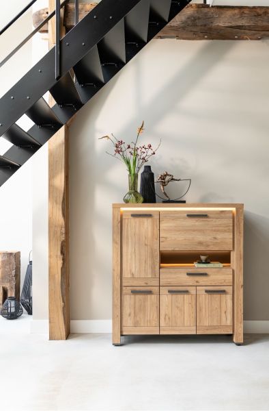 Henders & Hazel Delmonte, highboard 130 cm. - 4-deuren + 1-lade + 1-klep + 1-niche (LED + dimmer)
