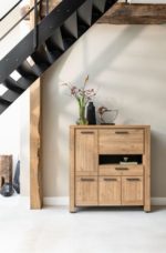 Dit highboard komt uit de collectie Delmonte. Wat deze collectie typeert, is de dimbare ledstrip die in de kasten wordt ingebouwd en de klassieke look (in een modern jasje) van deze kastencollectie. De kasten lijken van massief hout, maar zijn uitgevoerd in Primo Laminato in de kleur Oak Natural. Dat maakt de kasten enorm onderhoudsvriendelijk. Deze kast is 130cm breed en 140cm hoog. Dit is een ideaal opbergmeubel met 4 kastdeuren, een klep, een ruime lade en ook een klein open vak, dat op zijn beurt weer wordt verlicht door ingebouwde ledverlichting.