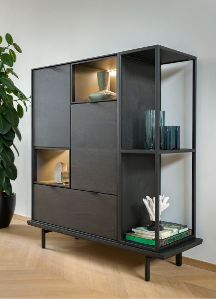 Met onze nieuwe serie ELEMENTS haal je de interieurstylist in je naar boven! Je stelt namelijk met alle losse ELEMENTS items jouw (wand)kast helemaal naar eigen wens samen. Gebruik deze onyx kleur bergkast die 60 cm smal is en voorzien van 1 deur, 2 laden en 1 met led verlichte niche als basis en combineer hem met andere ELEMENTS items in bijvoorbeeld naturel eiken fineer, lak groen, of lak zwart. Ga je voor een XS opstelling of pak je groots uit en wordt het een XXL kast?