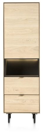Een moderne bergkast die altijd past en tegelijk voor die handige extra opbergruimte zorgt; dat is ELEMENS smal met een breedte van 60 cm. De buitenkant is gemaakt van naturel eikenfineer en het binnenwerk is vervaardigd van melamine in de kleur antraciet. ELEMENTS is voorzien van 1-deur + 2-laden + 1-niche dat met led is verlicht. Naast deze prachtige natureltint is hij ook verkrijgbaar in de stoere kleur onyx. De metalen poten maken het plaatje compleet. Wist je dat de ELEMENTS serie nog veel meer kasten bevat? Laat je verrassen en kies de kast die het beste in jouw interieur past!