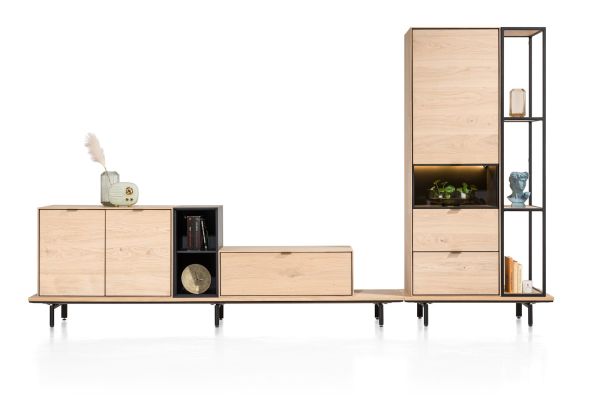 Met onze nieuwe serie ELEMENTS haal je de interieurstylist in je naar boven! Je stelt namelijk met alle losse ELEMENTS items jouw (wand)kast helemaal naar eigen wens samen. Gebruik dit naturel eiken fineer platform van 250 cm breed inclusief 3 metalen poten als basis om andere ELEMENTS items op pootjes te zetten! Ga je voor een XS opstelling of pak je groots uit en wordt het een XXL kast?