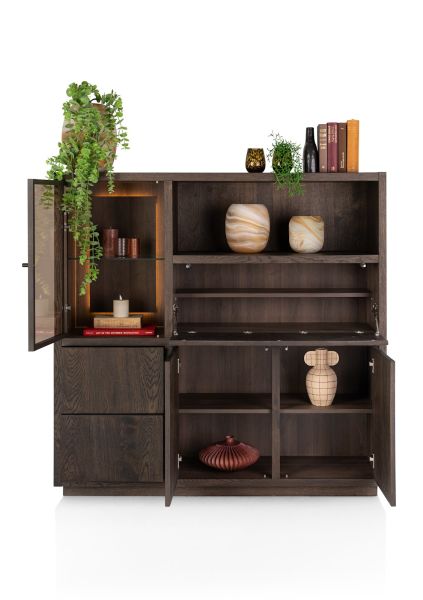 Henders & Hazel Gijon, highboard 145 cm - 1-glasdeur + 2-deuren + 2-laden + 1-klep + 1-niche (+ LED)